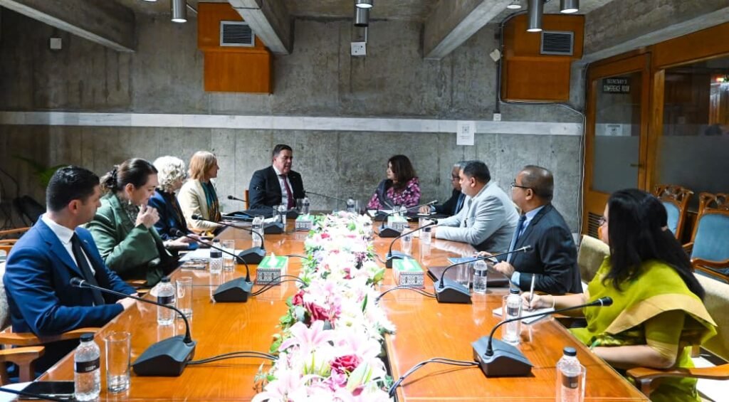 The visiting Australian parliamentary delegation, led by the Speaker of the House of Representatives, Milton Dick, MP, met with the State Minister for Foreign Affairs, Shama Obaed Islam, MP, at the National Parliament House on Thursday (09 April 2026).