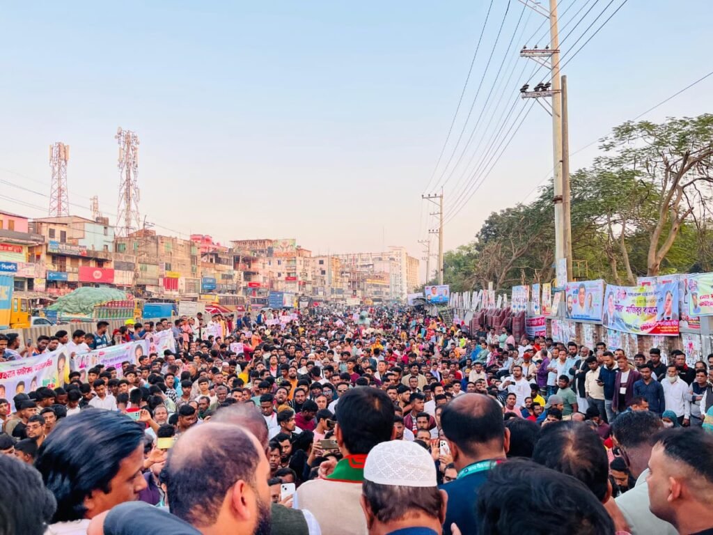 Mayor Mojibur Rahman, the BNP nominated candidate with the symbol of rice in Gazipur-1 constituency, was present as the chief guest at the meeting organized on Sunday (14 December 2025).