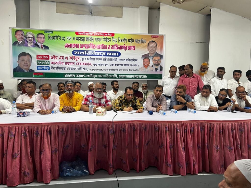 A dialogue meeting was held by BNP with voters and individuals of the area in Bhatara Ward No. 39 of the capital. BNP National Executive Committee’s Small and Credit Affairs Secretary Dr. MA Qayyum was present as the chief guest.