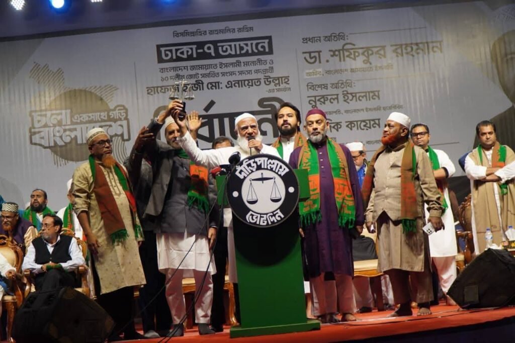 A huge election rally was held in support of Jamaat-e-Islami nominated MP Hafez Haji Md. Enayet Ullah from Dhaka-7 constituency. The rally was held at Alia Madrasa ground in Bakshibazar on Sunday (January 25).