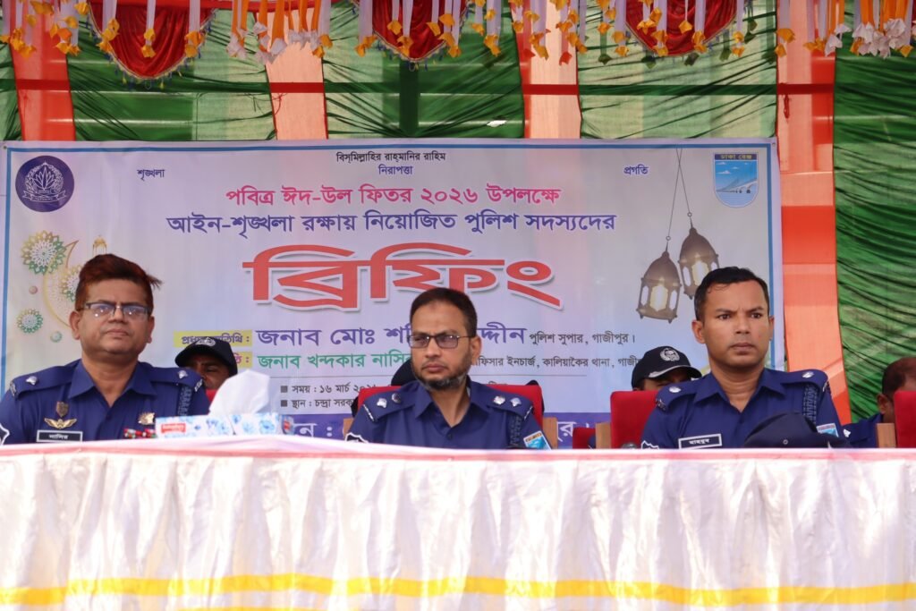 The District Police has strengthened special traffic management in Gazipur to ensure smooth travel of people returning home on the occasion of the holy Eid-ul-Fitr-2026. For this purpose, a briefing has been held to resolve traffic congestion on the highway and regional roads up to Nandan Square under Kaliakoir Police Station and to maintain normal law and order situation.
