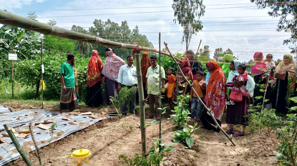 A climate-resilient integrated model farm is underway in Basatbari under the (SARPOTE) project funded by Islamic Relief Canada and implemented by Islamic Relief Bangladesh in Nawabganj Upazila of Dinajpur. In continuation of this (Sunday, August 31, 2025), a field day was held at the initiative of Shernagar Uttarpara Swanirbhar Dal of Putimara Union of Nawabganj Upazila.