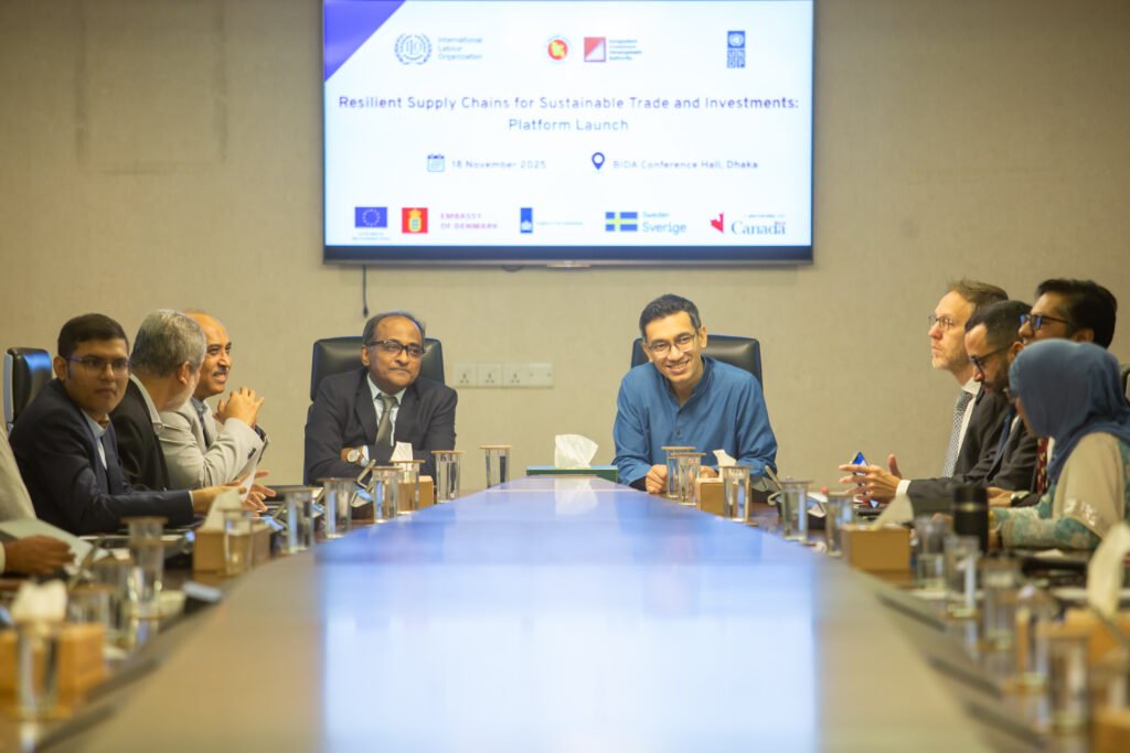 The “Sustainable Supply Chain Platform for Sustainable Trade and Investment” was formally inaugurated at the Bida Conference Hall on Tuesday (18 November 2025) by the Bangladesh Investment Development Authority (BIDA), the Ministry of Commerce, the International Labour Organization (ILO) and the United Nations Development Programme (UNDP).